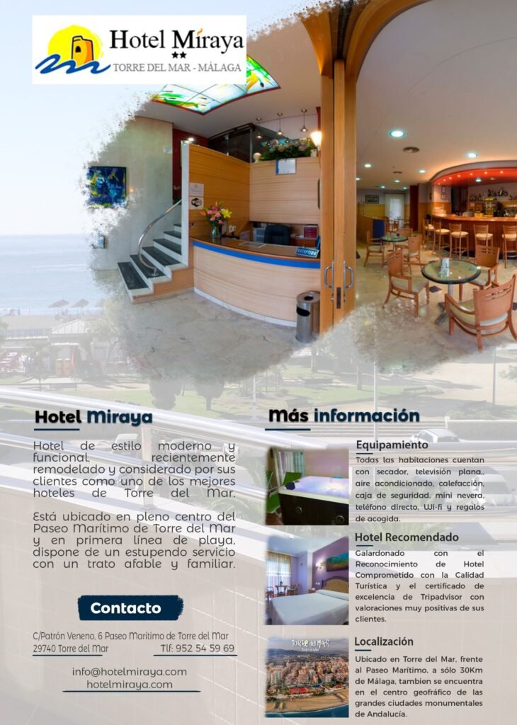 🥰 Hotel de estilo moderno y funcional, recientemente remodelado y considerado por sus clientes como uno de los mejores hoteles de Torre del Mar.