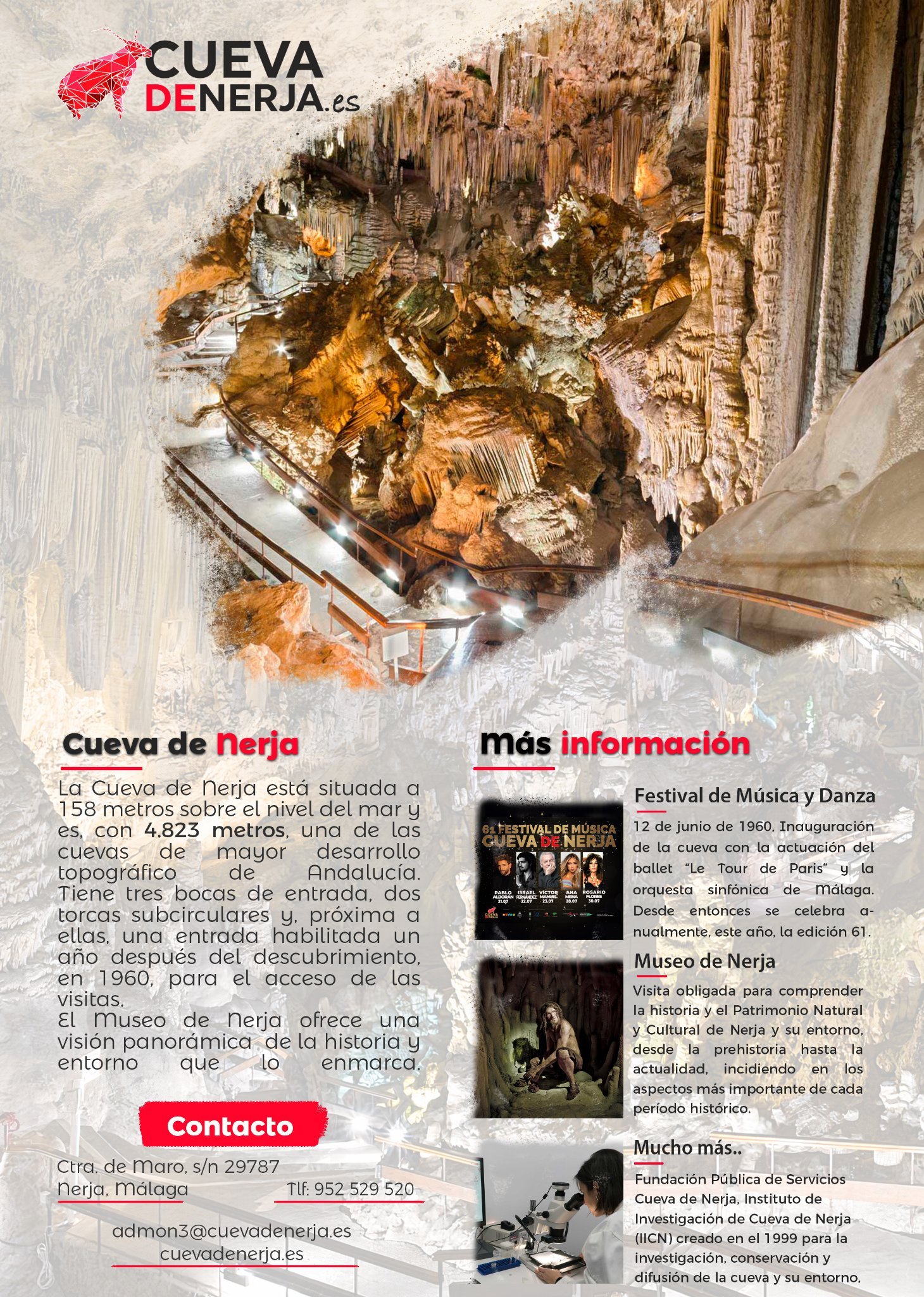 😍 La Cueva de Nerja está situada a 158 metros sobre el nivel del mar y es, con 4.823 metros, una de las cuevas de mayor desarrollo topográfico de Andalucía 🥰.