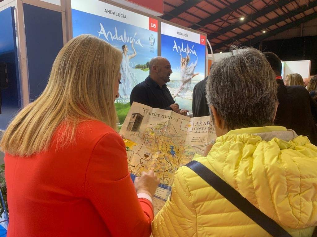 La Comarca de la Axarquía representada a través de APTA, Asociación para la Promoción Turística de la Axarquía, en el mostrador de Turismo Andaluz dentro del expositor de Turespaña.