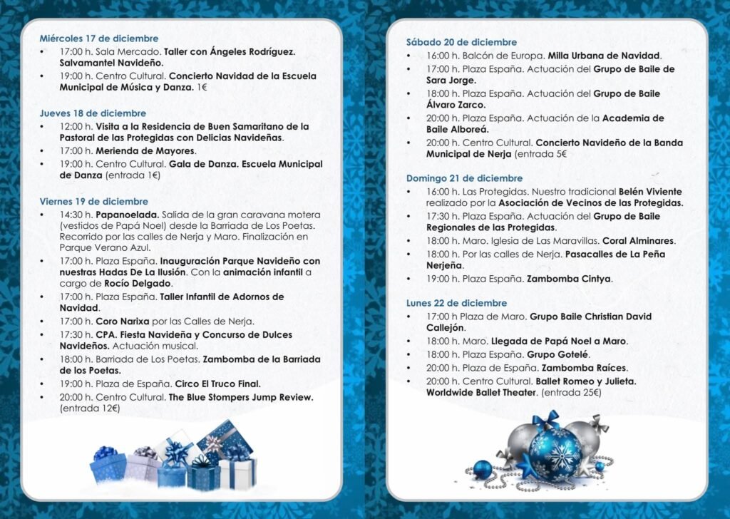 Nerja se viste de gala para celebrar la Navidad 2025-2026 con una programación espectacular llena de música, tradición y sorpresas para todos. ¡Prepárate para vivir el espíritu navideño en el Balcón de Europa!