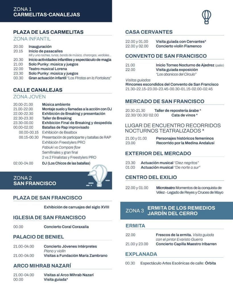 Aunque el cartel no lo menciona específicamente, históricamente la “Noche en Vela” se ha centrado en embellecer y dar vida a zonas emblemáticas como la Fortaleza, el Barrio de la Villa y el centro, ofreciendo un recorrido lleno de encanto y sorpresas. ¡Imagina la belleza del atardecer sobre la Alcazaba y las calles iluminadas solo por el suave titilar de las velas! 😍