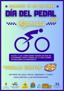 Más información »🚴♂️ ¡Ven al Día del Pedal en Algarrobo! 🚴♀️ 📅 El domingo 19 de octubre, salimos a las 🕙 10:00h desde la parada de bus hasta el 🏞️ Parque de la Vega, donde compartiremos una jornada llena de 🏃♂️ deporte y 🤝 convivencia. 🍽️ ¡Paella gratis! 💧🍎🎁 Agua, fruta, obsequio y ticket […]